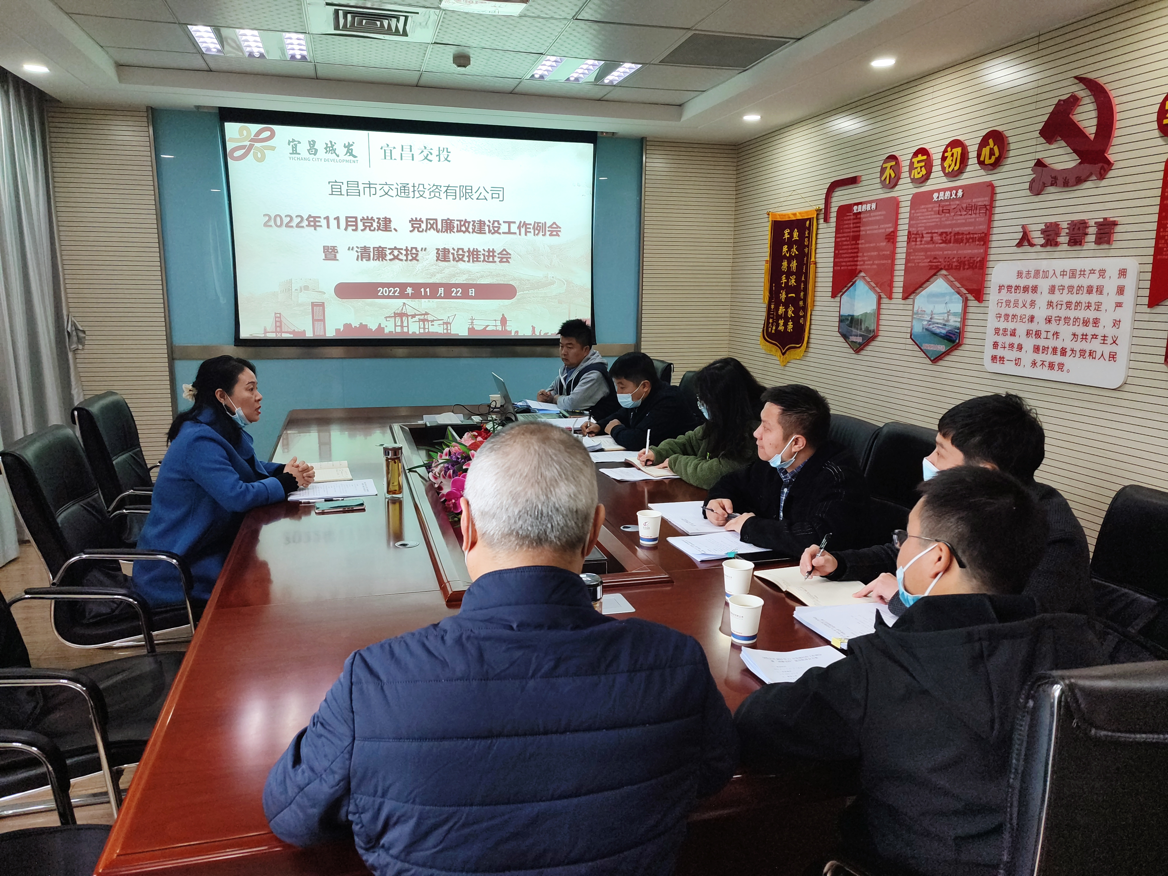 四、11月22日,交投公司組織召開黨建、黨風(fēng)廉政建設(shè)工作例會(huì)暨“清廉交投”建設(shè)推進(jìn)會(huì),公司黨委委員、紀(jì)委書記黎毅主持會(huì)議,各基層黨支部書記(牽頭負(fù)責(zé)人)、紀(jì)檢委員及黨務(wù)工作者參加會(huì)議。會(huì)上深入學(xué)習(xí)黨的二十大精神、《中國共產(chǎn)黨紀(jì)律檢查委員會(huì)工作條例》、《紀(jì)檢監(jiān)察機(jī)關(guān)派駐機(jī)構(gòu)工作規(guī)則》以及政治生態(tài)分析研判相關(guān)工作方案及要求,并傳達(dá)了城發(fā)集團(tuán)專業(yè)化整合集中授牌儀式及城發(fā)投資集團(tuán)干部任職大會(huì)精神,對黨務(wù)紀(jì)檢工作人員進(jìn)行了專題培訓(xùn),重點(diǎn)圍繞近期印發(fā)的三個(gè)制度進(jìn)行學(xué)習(xí),安排部署近階段重點(diǎn)工作。當(dāng)天下午,湖北三峽現(xiàn)代物流有限公司、田家河鐵路項(xiàng)目指揮部分別對會(huì)議精神進(jìn)行了傳達(dá),進(jìn)一步凝聚了人心,鼓舞了士氣,壓實(shí)了責(zé)任。