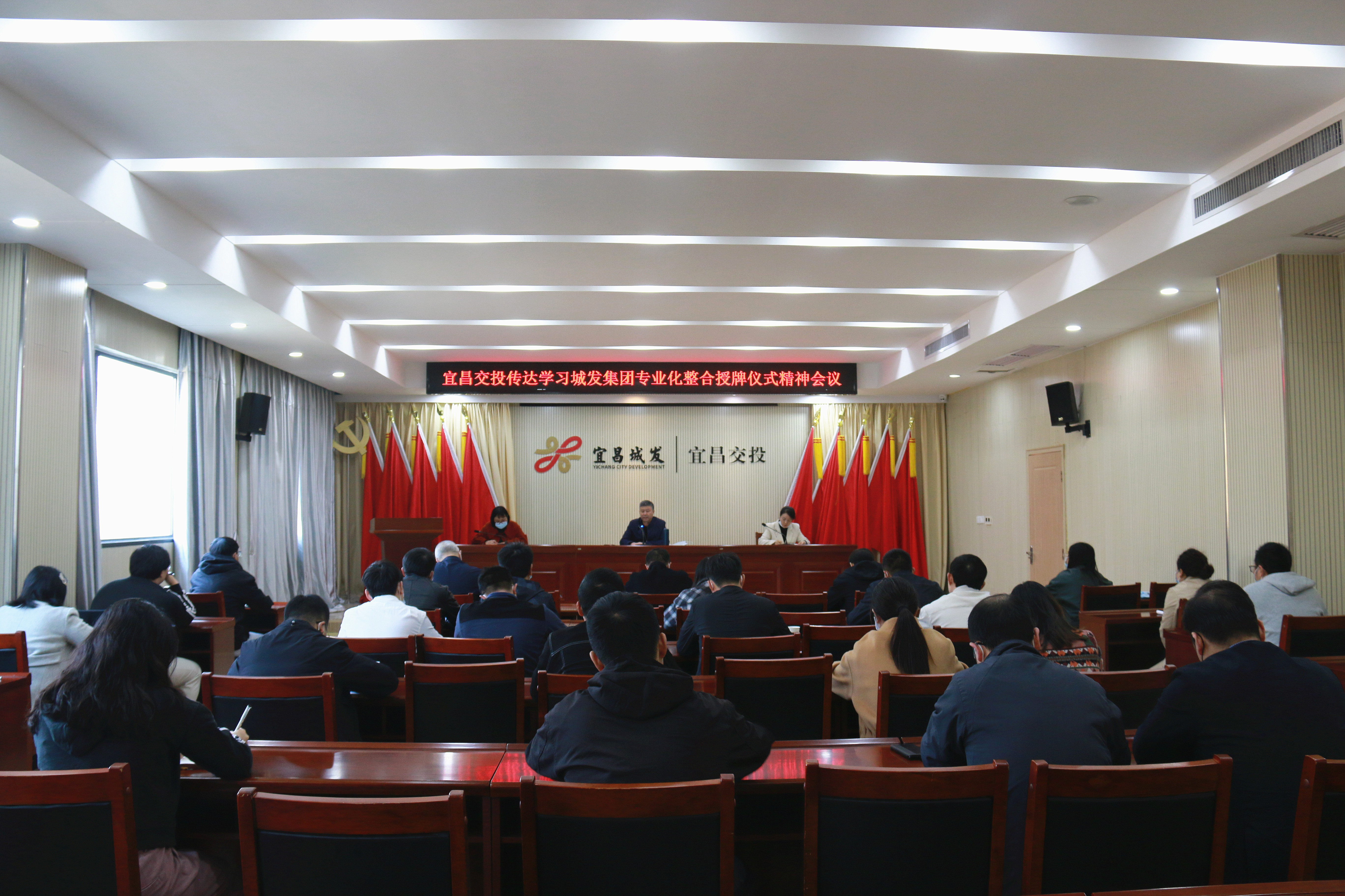 二、11月20日,宜昌城發(fā)投資集團(tuán)有限公司在交投大廈六樓會(huì)議室召開干部任職大會(huì),傳達(dá)城發(fā)集團(tuán)專業(yè)化整合授牌儀式會(huì)議精神。城發(fā)集團(tuán)黨委委員、紀(jì)委書記劉仁,城發(fā)集團(tuán)黨委委員、副總經(jīng)理,城發(fā)投資集團(tuán)黨委書記、董事長李江濤,城發(fā)集團(tuán)黨委辦公室主任歐陽博,城發(fā)集團(tuán)組織部部長饒學(xué)敬出席會(huì)議,新成立的宜昌城發(fā)投資集團(tuán)有限公司全體領(lǐng)導(dǎo)班子成員、各子公司領(lǐng)導(dǎo)班子及中層干部參加了會(huì)議。會(huì)議由李江濤主持。會(huì)上宣讀了宜昌城市發(fā)展投資集團(tuán)有限公司關(guān)于組建宜昌城發(fā)投資集團(tuán)有限公司的通知和干部任免文件。城發(fā)投資集團(tuán)班子成員依次進(jìn)行表態(tài)發(fā)言。李江濤要求,集團(tuán)所屬各子公司要提高認(rèn)識(shí),堅(jiān)定信心,把思想統(tǒng)一到改革發(fā)展的大局上來;要嚴(yán)肅紀(jì)律,端正作風(fēng),確保改革重組工作風(fēng)清氣正;要加強(qiáng)學(xué)習(xí),練就本領(lǐng),堅(jiān)決扛起城市建設(shè)主力軍的重任。城發(fā)集團(tuán)黨委委員、紀(jì)委書記劉仁強(qiáng)調(diào),城發(fā)投資集團(tuán)在城發(fā)集團(tuán)“255產(chǎn)業(yè)矩陣”中具有重要戰(zhàn)略意義,城發(fā)投資集團(tuán)要提高站位,自我加壓,對標(biāo)看齊,迅速完成公司班子成員分工、架構(gòu)整合、股權(quán)劃轉(zhuǎn)等各項(xiàng)規(guī)范化工作,不折不扣落實(shí)集團(tuán)既定的工作安排。要高點(diǎn)定位,統(tǒng)籌發(fā)展,做好2023年的謀篇布局工作,全力以赴推動(dòng)明年重點(diǎn)項(xiàng)目建設(shè)工作強(qiáng)勢開局,堅(jiān)決扛起責(zé)任擔(dān)當(dāng),為城發(fā)集團(tuán)的高質(zhì)量發(fā)展貢獻(xiàn)堅(jiān)實(shí)力量。交投公司組織領(lǐng)導(dǎo)班子成員及中層干部參加大會(huì),并層層傳達(dá)會(huì)議精神,抓好貫徹落實(shí)。